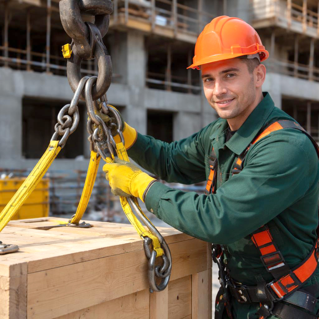 2-й разряд. Работа с простыми грузами до 5 тонн и длиной до 3 метров, проверка стропов и подача сигналов крановщику.